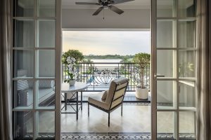 Mia Saigon is a gorgeous sweeping hotel on the banks of the Saigon River. A beautifully designed white property inspired by early 1920’s art deco architecture from the French Indochina, the elegance and vastness of the property gives this luxury boutique hotel a grand feel. The entrance is airy and walks straight through to an expansive pool and plush greenery filled with flowers. The rooms are beautifully decorated and have large terraces overlooking the pool and river. Interior colours are inspired by citrine, emerald and ruby gemstones and the high ceilings and large rooms are filled with the beautiful hue of natural light.